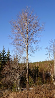 One other thing I have read about aspens is that they form "clones" - many trees growing from the same root system - genetically identical. Here is one, for a bonsai enthusiast very interesting, aspen clone I walked by yesterday: heavily grazed by moose to shape these dwarfed trees!